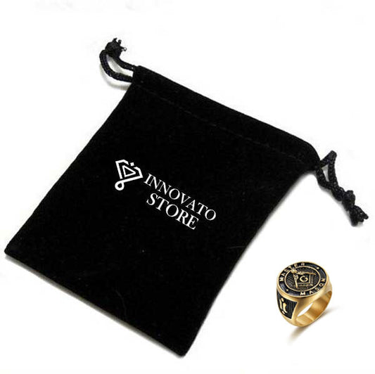"Master Mason" Gold Plated Stainless Steel Masonic Ring with Black Inlay for Men