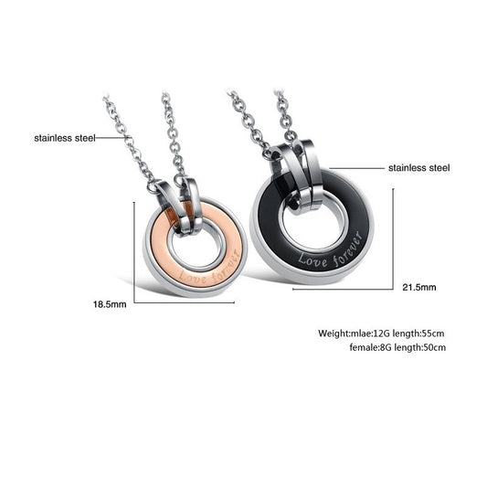 "Love Forever" Black and Rose Gold Couple Pendant Necklaces