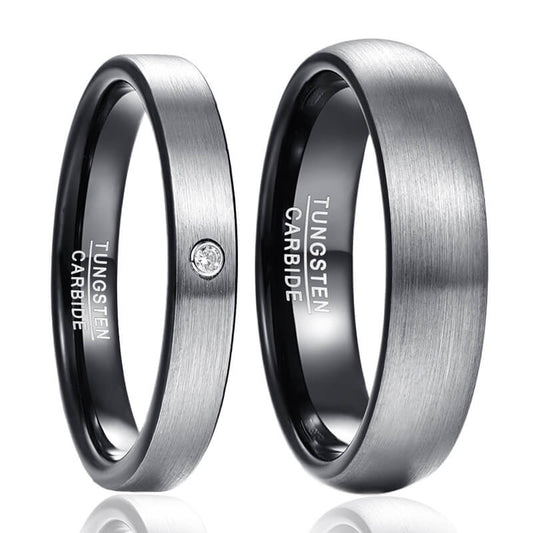 His & Her 4mm/6mm Brushed Finish Zircon Tungsten Carbide Comfort Fit Wedding Bands