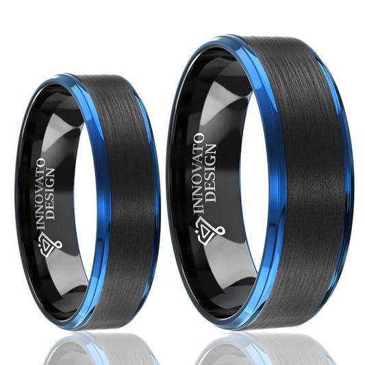His & Her 6mm/8mm Black Blue Two-Tone Tungsten Carbide Wedding Ring Set Matte Finish