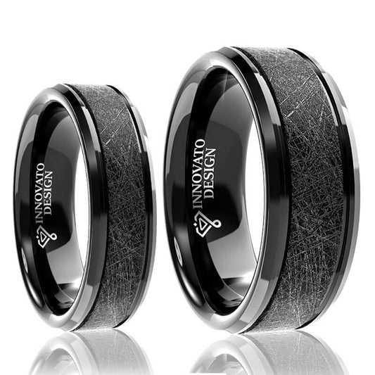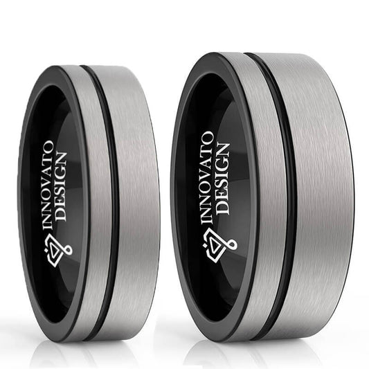 His & Her 6mm/8mm Brushed Matte Grey Tungsten Carbide Rings Set with Black Groove