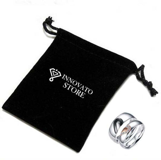 His & Hers Wedding Bands - Black Zirconia and Stainless Steel Zircon Rings