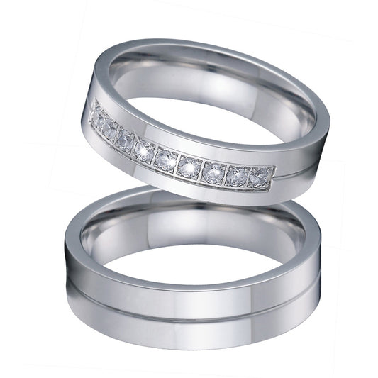 His & Hers Wedding Bands – Polished Titanium Steel and Cubic Zirconia Rings Set