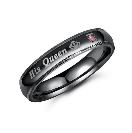His and Hers Stainless Steel Ring with Brushed Matte Inlay and CZ Stones for the Ladies