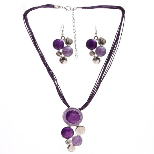 Leather Chain Enamel Gem Necklace & Earrings Jewelry Set