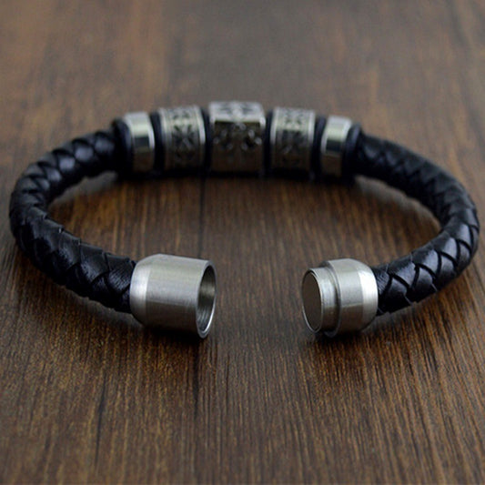 Leather Stainless Steel Eagle Bracelet for Men