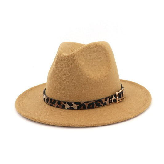 Leopard Print Wide Brim Wool Felt Fedora Hat