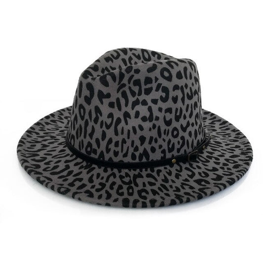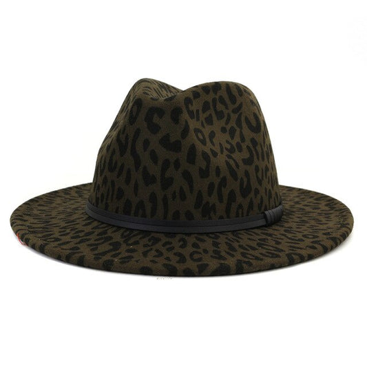 Leopard Print Large Brimmed Wool Felt Fedora Hat