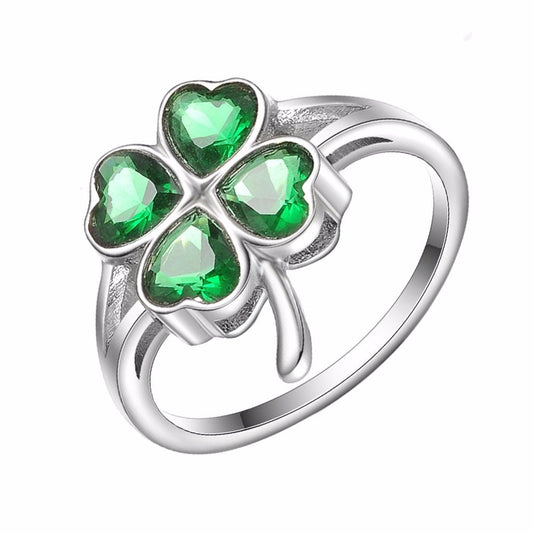 Lucky Four Leaf Clovers with Green Cubic Zirconia Engagement Ring