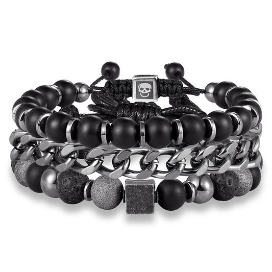 Multilayer Link Chain, Skull Stone Beaded & Hematite Vintage Bracelet