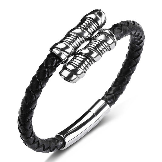 Nail Leather & Stainless Steel Buckle Bracelet