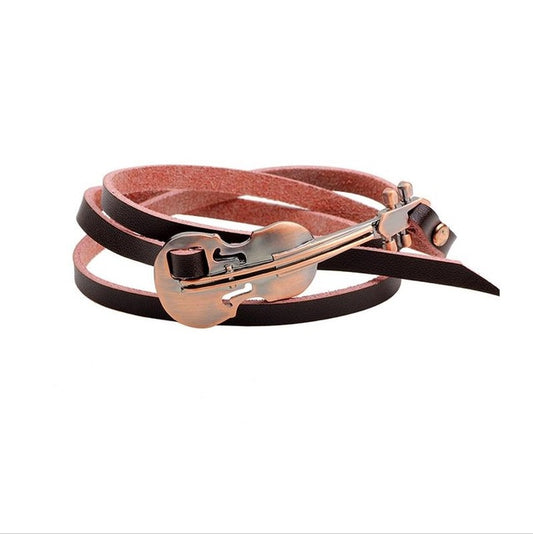 Multilayer Real Leather & Guitar Charm Bracelet