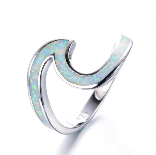 Ocean Wave Blue Opal Stone 925 Sterling Silver Charm Ring