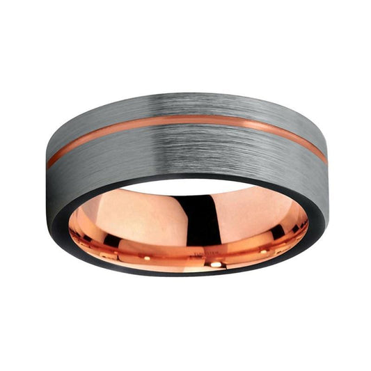 Offset Brushed Matte Silver Coated Black Tungsten Carbide with Rose Gold Tone