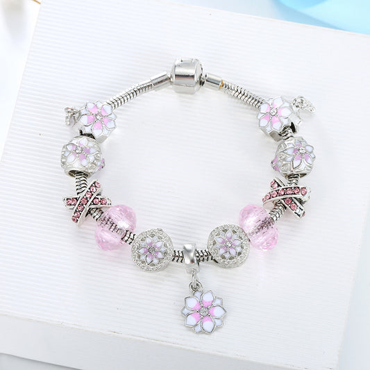 Pink Flower 925 Sterling Silver Necklace, Earrings & Ring Jewelry Set