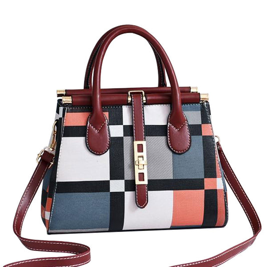 Plaid PU Leather Designer Patchwork Tote Handbag & Shoulder Bag
