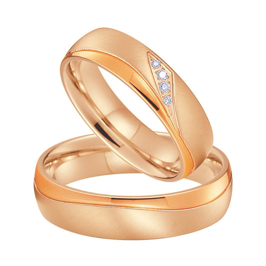 Rose Gold Brushed Matte Titanium Steel and Cubic Zirconia Wedding Bands Set