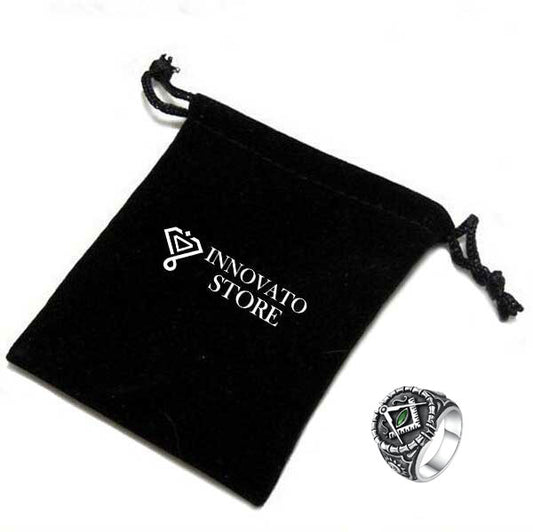 Round Masonic Ring for Men with Green Cubic Zirconia Stone