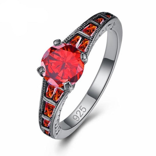Round Cut Cubic Zirconia Black Plated 925 Sterling Silver Engagemennt Ring