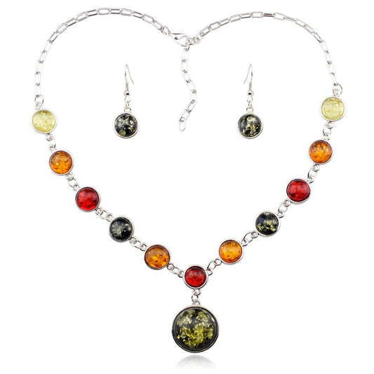 Round Baltic Synthetic Amber Necklace & Earrings Jewelry Set