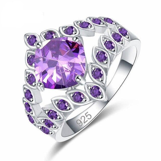 Round & Oval Cut Cubic Zirconia 925 Sterling Silver Engagement Ring