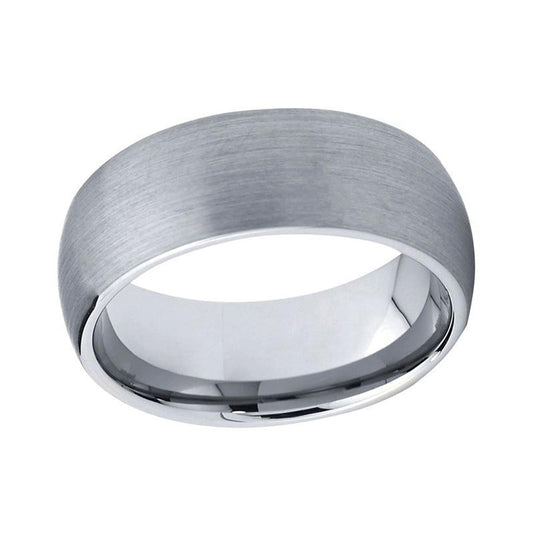 Silver Brushed Matte and Silver Coated Interior Tungsten Carbide Ring