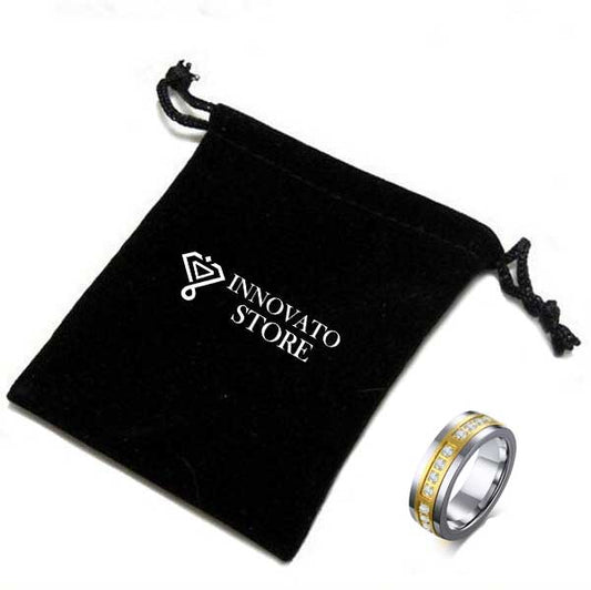 Silver Coated Tungsten Carbide with Gold Center and CZ insert Wedding Ring