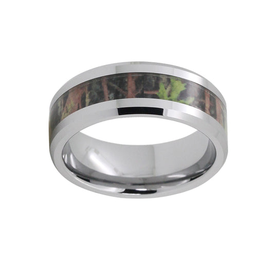 Silver Coated Tungsten carbide Metal with Camo Forest Design Inlay Wedding Ring