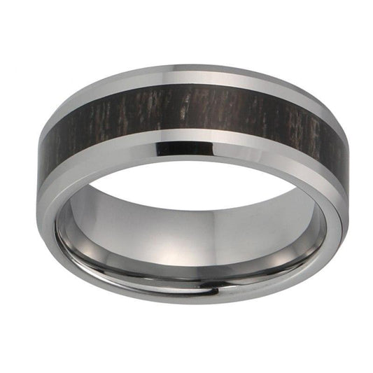 Silver Coated Tungsten Carbide with Dark Polished Koa Wood Inlay Wedding Band