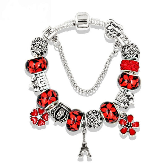 Silver Tower, Castle, Heart, Flower & Crown Charm Bracelet