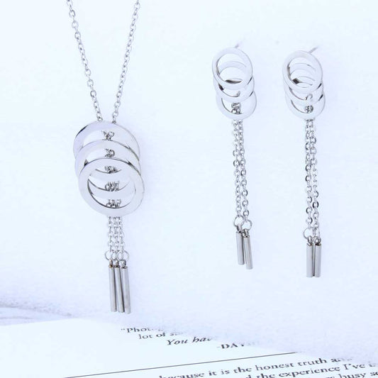 Silver Tassel Stainless Steel Fashion Wedding Earrings & Necklace Jewelry Set