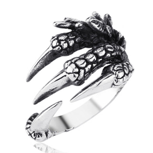 Silver Tone Copper Gothic Ring for Women and Men with Dragon Claw Design and Dragon Skin Pattern