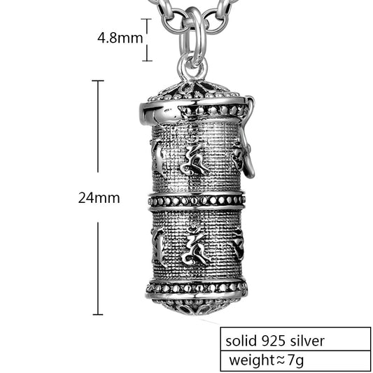 Six Words Mantra Rotatable Design Sterling Silver Vintage Pendant Necklace
