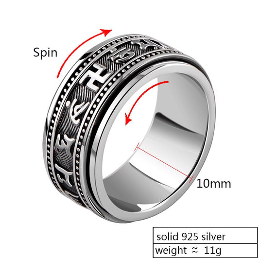 Six Words Mantra Spinner 925 Sterling Silver Vintage Ring