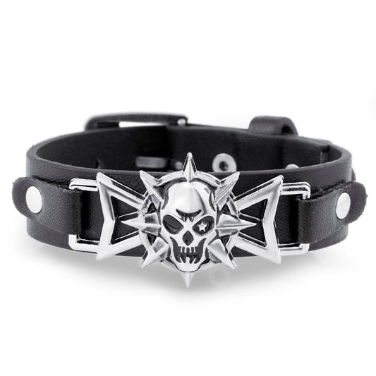Skeleton Skull Star Eye Gothic Leather Belt Buckle Bracelet