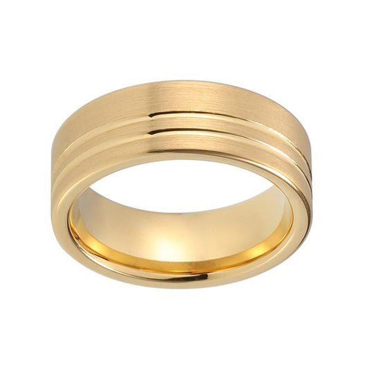 Simple Gold Pipe Cut Matte Brushed Tungsten Wedding Band