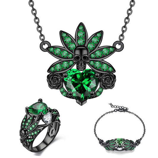Skull and Cubic Zirconia Heart Necklace & Ring Jewelry Set