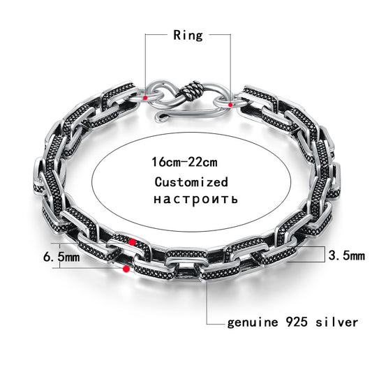 Square Black Cable Chain 925 Sterling Silver Biker Vintage Bracelet