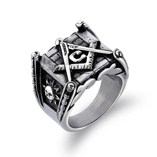 Stainless Steel Ancient Masonic Ring with Gold Plated Symbol Ring for Men