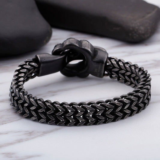 Stainless Steel Vintage Black Skull Belt Bracelet