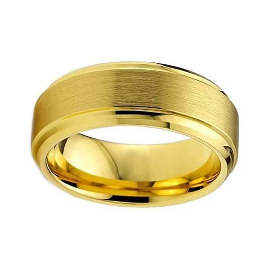 Tungsten Carbide Yellow Gold- plated Matte Brushed Wedding Band