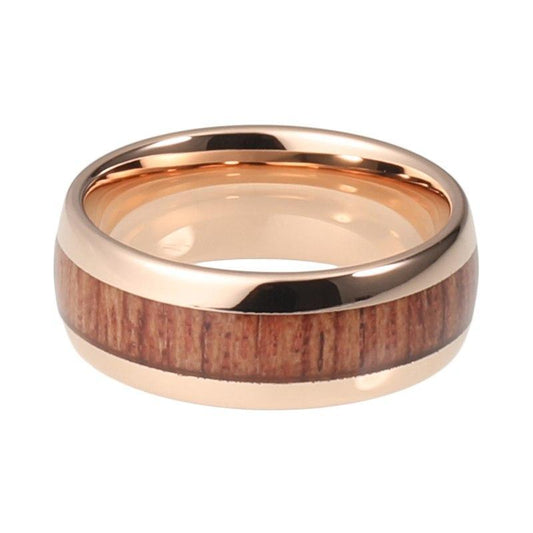 Tungsten Carbide Rose Gold Coated Domed Band with Koa Wood Inlay