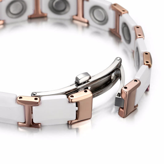Tungsten and Ceramic Magnetic Bracelet White & Rose Gold