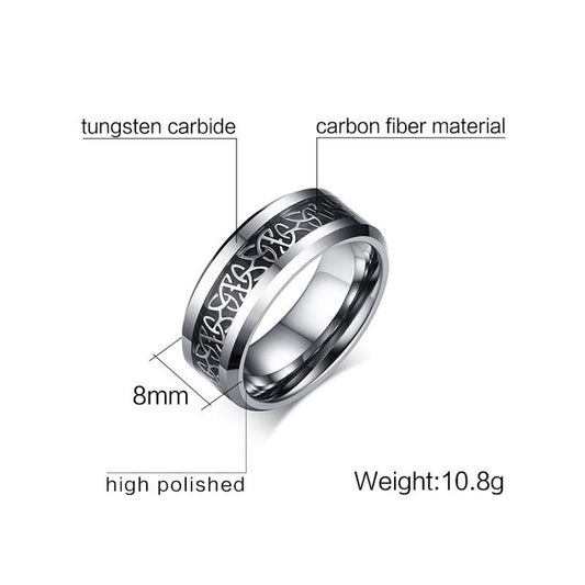 Tungsten Carbide and Silver Coated Dragon Pattern with Black Carbon Inlay Unisex Ring