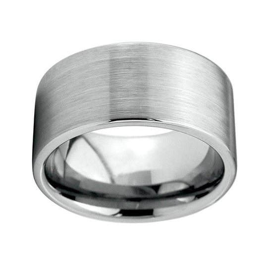 Tungsten Silver Plated Brushed Matte Ring with Groove Paths and Polished Interior