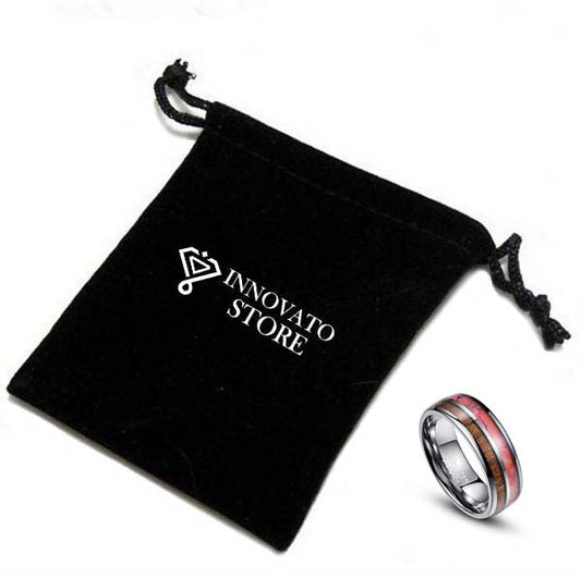 Two Tone Rose and Wood Inlay with White Silver-Tungsten Carbide Wedding Rings