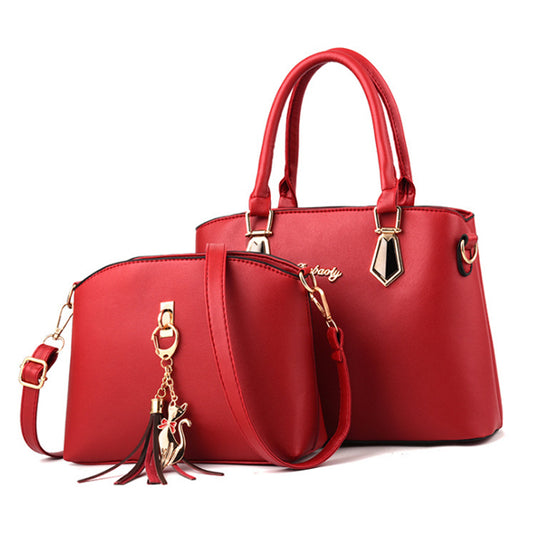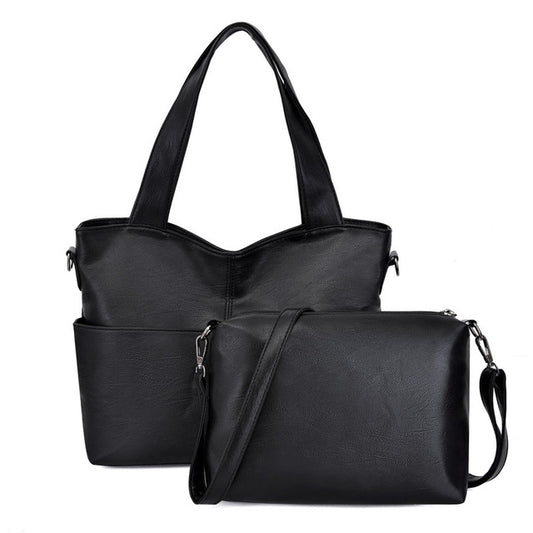Two-Set High Capacity Casual PU Leather Designer Tote Handbag, Crossbody & Shoulder Bag