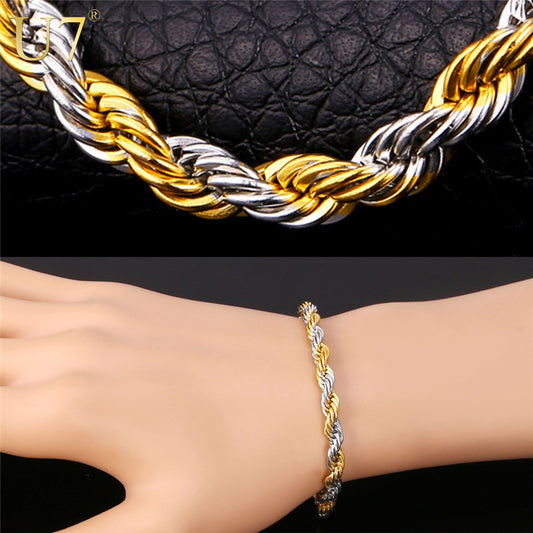 Two-toned Gold and Silver Stainless Steel Twisted Rope Bracelet