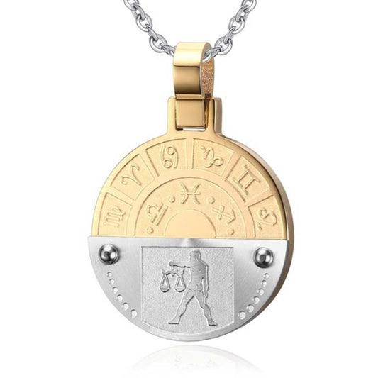 Two Tone Stainless Steel Zodiac Sign Pendant Necklace