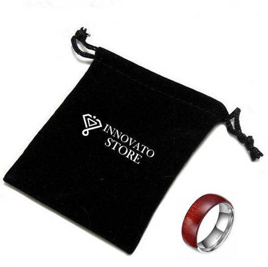 Unisex 8mm Half Titanium Silver Color Inside Ring for Men with Brown Wood Inlay Decoration